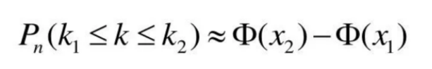Если вероятность р наступления события А в каждом испытании постоянна (0<<1), то вероятность того, что число к наступлений события А в n независимых испытаниях заключено в пределах от K1, до К2 при достаточно большом числе и приближенно равно: